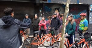 Agradecemos la participación de la Arq. Adriana Piastrellini, presidente de AdbA y la buena predisposición del equipo de Bicicleta Naranja: José Luis, propietario, Agustín, guía de turismo y Jerónimo, quien cuidaba que todos transitemos seguros.